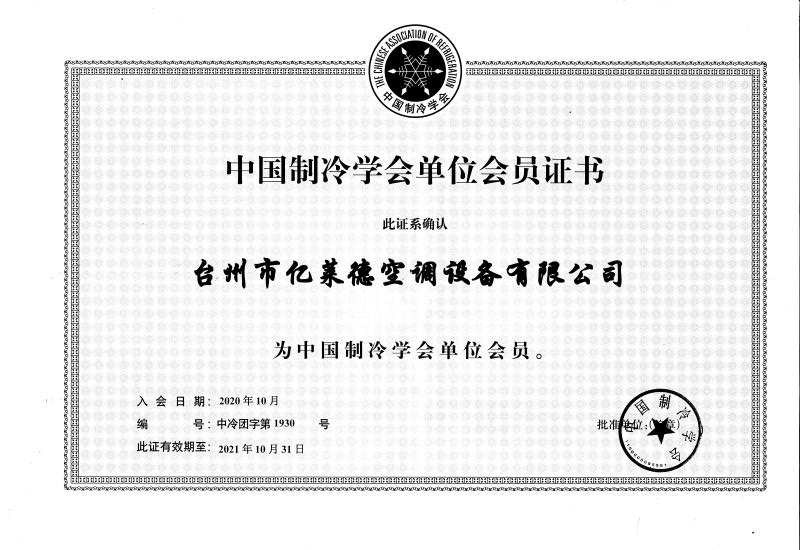 中國制冷學(xué)會(huì)單位會(huì)員證書